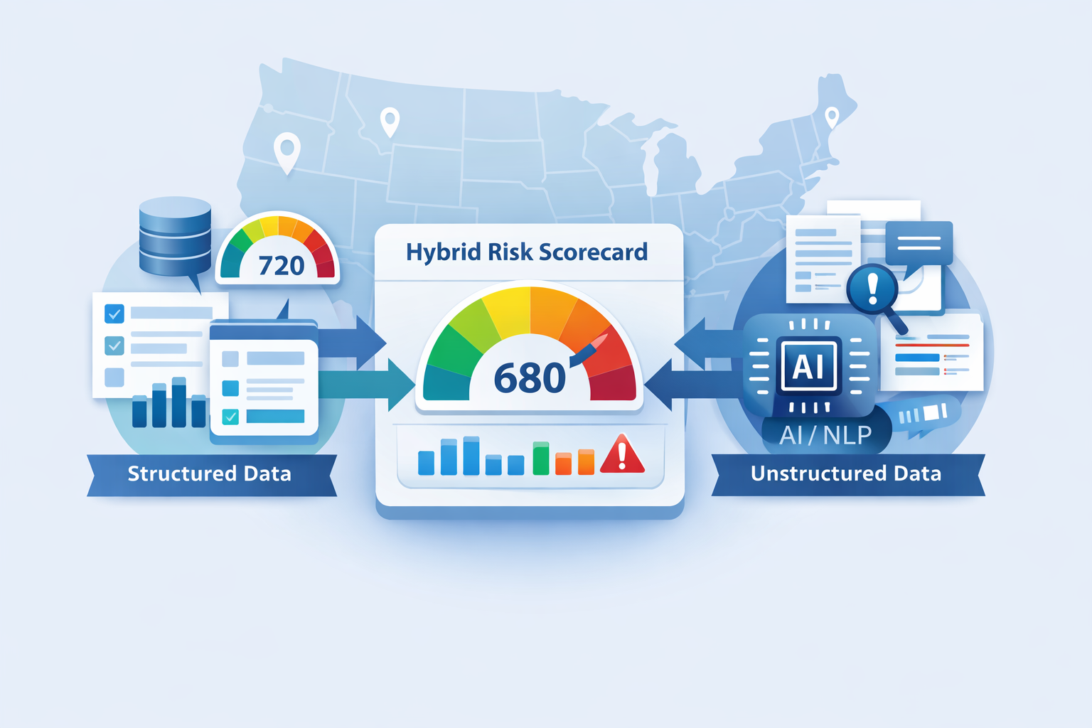 Financial Services Operations · Lending · Risk & ComplianceWe built risk scorecards and analytical pipelines for a US payday lender operating across multiple states, serving both consumer and small-business lending. We delivered traditional scorecards (bureau data, application fields, behavioral signals) and robust ETL so operations could rely on a single, consistent risk view. On that same engagement type we also deliver an AI layer that uses unstructured data—application free text, underwriter notes, document content—to refine the score or flag edge cases that structured data alone misses.